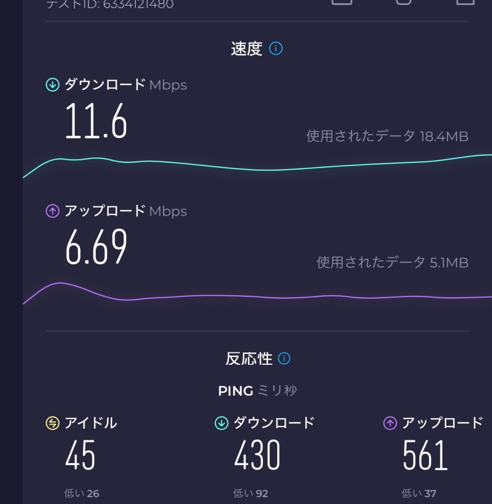 – ダウンロード速度:11.6Mbps
